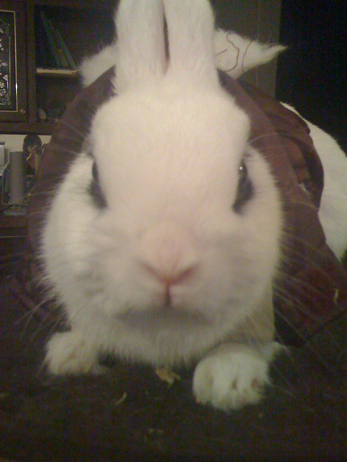 With her beady little black eye, gray fur with white underside, and her ravenous appetite, does she not remind you of a great white shark? Kiwi lunges for this carrot like it is her last one.